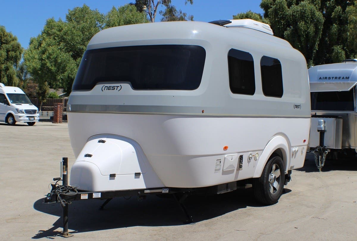 Its durable fiberglass body and sleek design profile will speak to anyone who loves attention to detail. The Nest is small lightweight and is available in two different floor plans. Airstream Nest RVs For Sale.